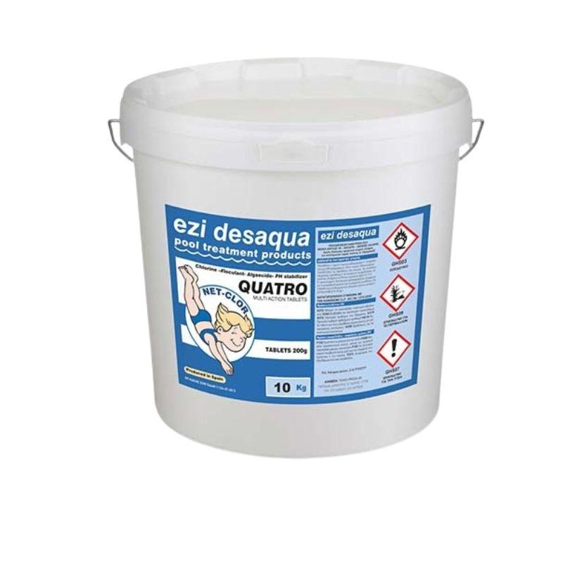 Οργανικό σταθεροποιημένο ενεργό χλώριο 90%, αργής διάλυσης, που περιέχει χλώριο, αλγοκτόνο, κροκιδωτικό και σταθεροποιητή ΡΗ, σε μορφή ταμπλέτας 200gr. Απολυμαίνει το νερό με τη βοήθεια του χλωρίου που περιέχει, εμποδίζει την εμφάνιση άλγεων με τη βοήθεια του αλγοκτόνου που περιέχει, ενώ εξασφαλίζει κρυστάλλινο και διαυγές νερό μέσω του κροκιδωτικού που διαθέτει, σταθεροποιώντας παράλληλα τη τιμή του ΡΗ.